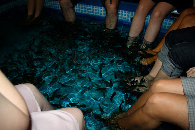 Then the fishes. Everyone got treated to those pirana fishes that bite off your dead skin. Yum, a natural exfoliant. =|